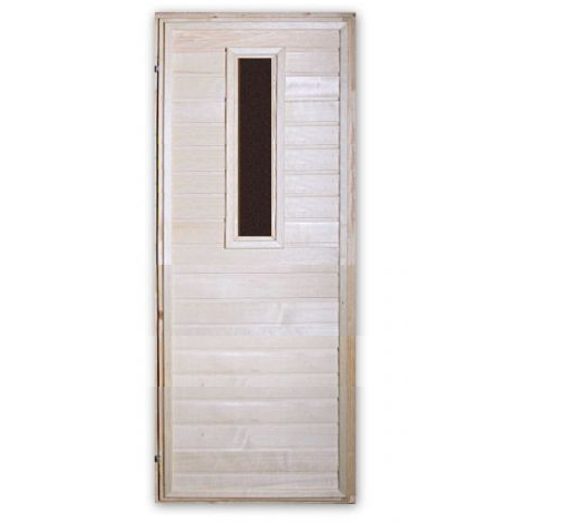 Вставка--стекло.Глухая дверь придает бане или сауне комфорт и уют, надежность и основательность. В комбинированной двери присутствуют вставки из термостойкого стекла, что дает возможность сочетать в себе современный дизайн с теплотой и благородством дерева.