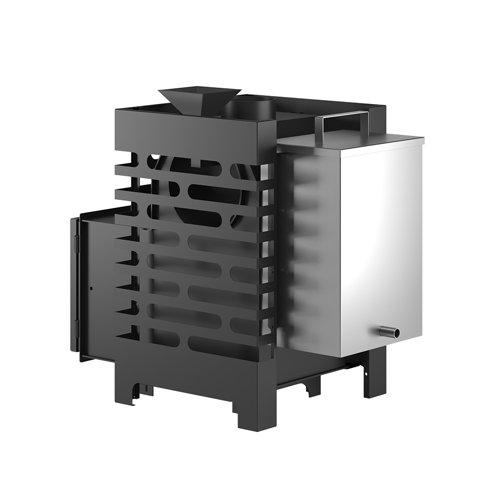 Большая масса камней, закладываемых в сетку-кожух печи, обеспечивает стабильность температуры в парилке и является мощным парогенератором.