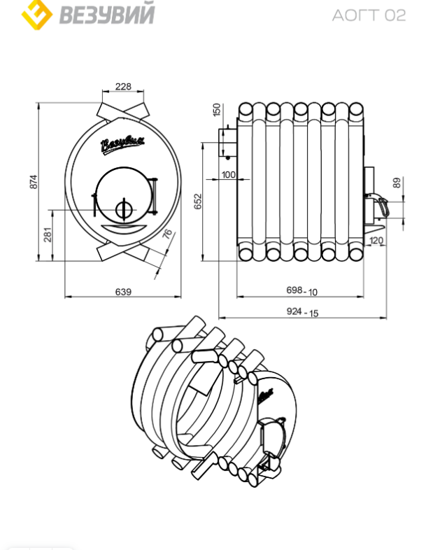 Печь отопительная ВЕЗУВИЙ АОГТ 02